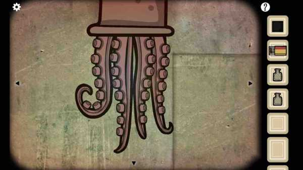 2、输入密码出现章鱼须,这个时候就需要玩家点击章鱼须,该须会凸起两个吸盘,邻近的须会凸起一个吸盘。使所有的吸盘都突起,用墨水瓶接住章鱼汁。