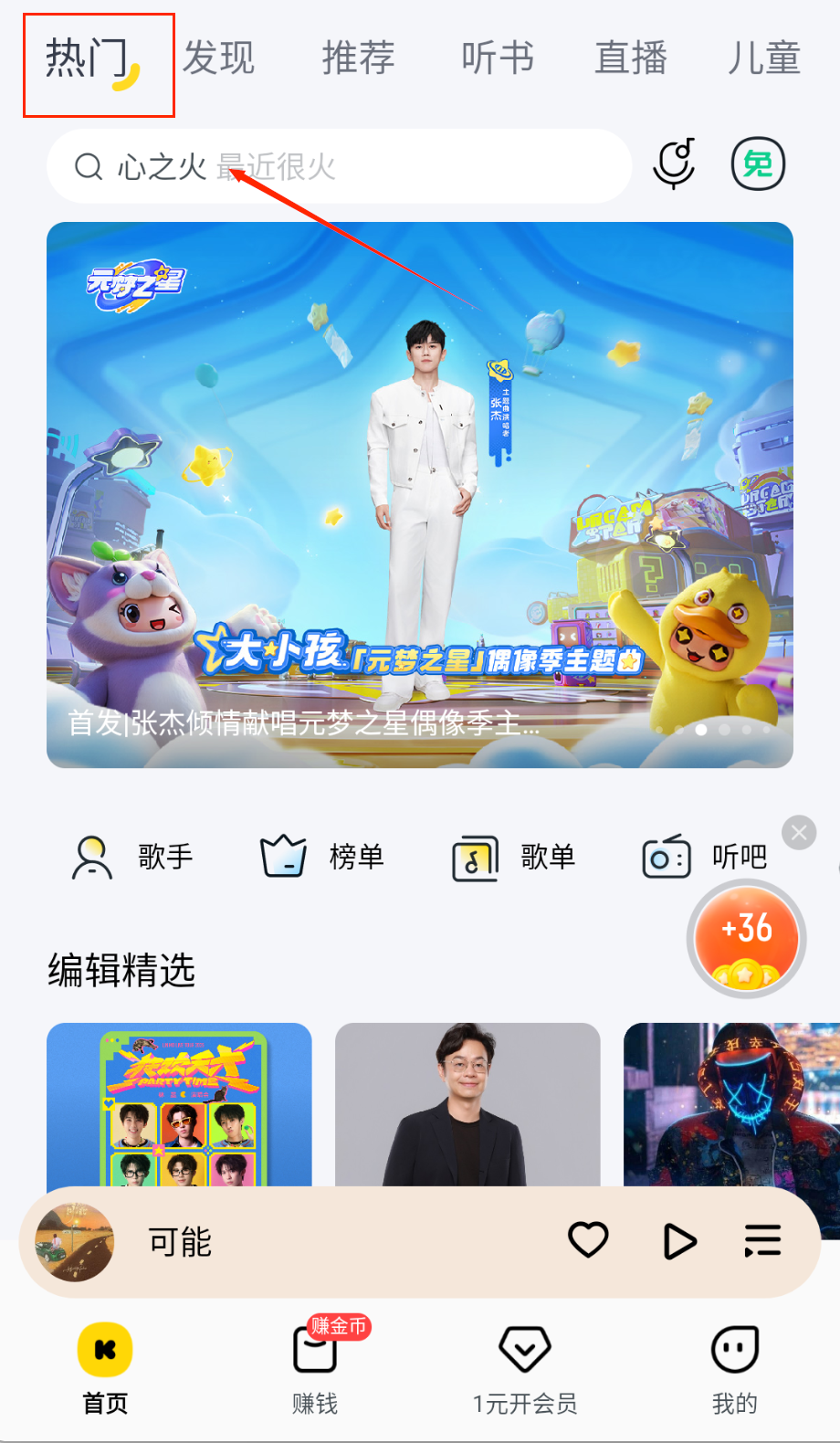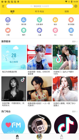 1、系统会根据热门程度给你推荐一些当下最火的歌曲和歌单,遇到喜欢的可以直接点击播放或者收藏到自己的歌单里。