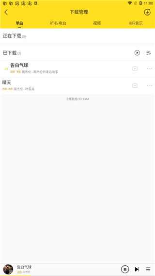 6、点击下载,下载的歌曲就会出现在这里,这样就支持离线听歌哦!