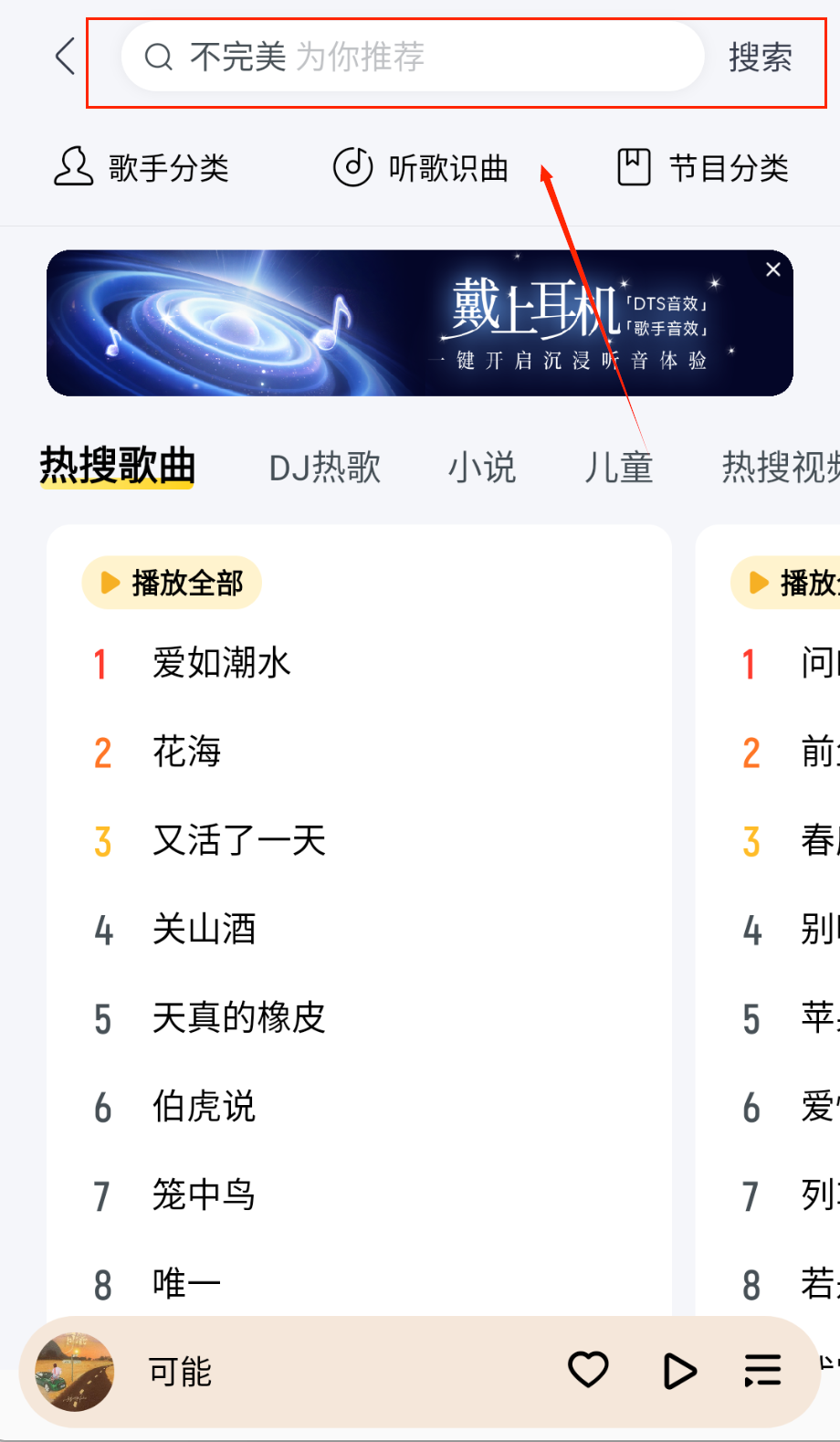 2、选择自己喜欢的歌手,然后输入名字,可以快速查找到他的歌曲;
