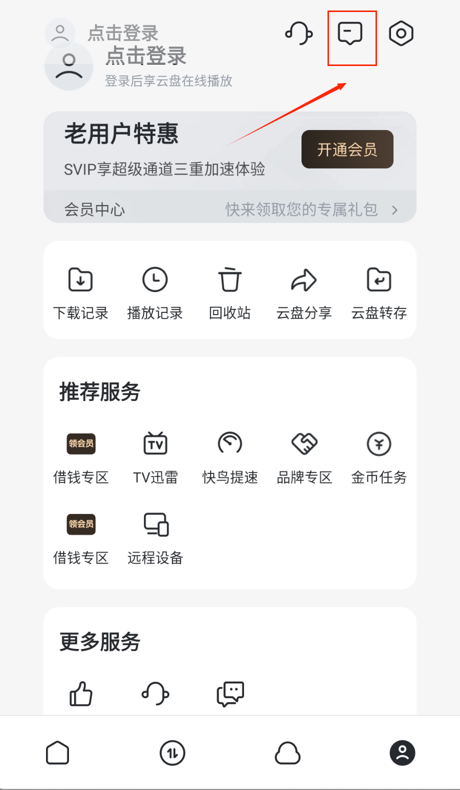 4、云盘功能需要先登录才能使用,登录后可以在线播放视频,开通会员能享受加速通道,下载记录和播放记录帮你管理文件历史啦。