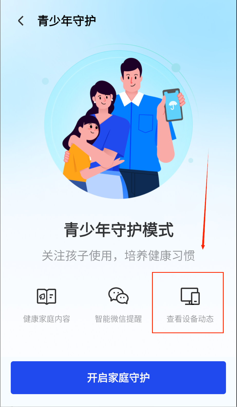 1、在查看设备动态功能中,可以实时查看孩子当前在使用的应用和使用时长,如果发现使用时间过长,可以远程发送提醒。