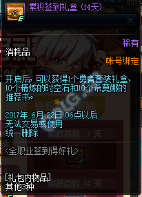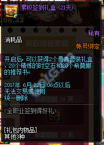 全职业签到得好礼,累积签到14天、21天礼盒中,总共可以开出30个