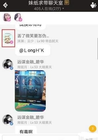 5.点击聊天室功能可以进入玩家聊天室界面。我随机点击进入一个妹子聊天室,在聊天框点击玩家头像可以进入该玩家的主界面,在这个界面下方也有一个添加好友功能。