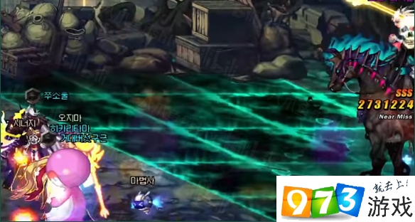 当玩家踏入绿色地板时,将受到持续伤害,因此需要进行不断躲避