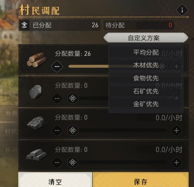 4、当大家在其中建造了民舍之后,可以进行调配村民,按照需求生产材料。