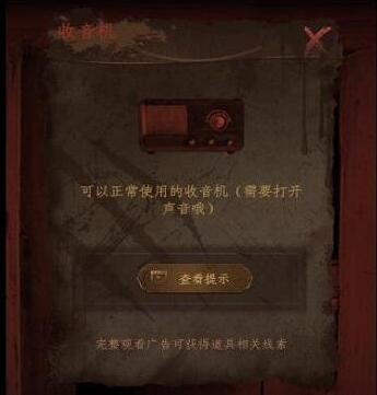 2、这里直接点击柜子发现需要密码,直接输入962从而打开柜子得到纸片方仪,其中还有着一个缺少电池的收音机,点击桌子上的铁盒从而即可得到电池。