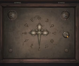 32、出屋子,发现旁边物资的门开了,进去,按照万华镜的顺序完成像的解谜,获得环状饰品和小方块。