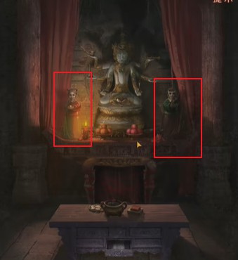 37、将佛像房间中,佛像坐下的线剪了,将木偶排成一二三四完成小游戏。