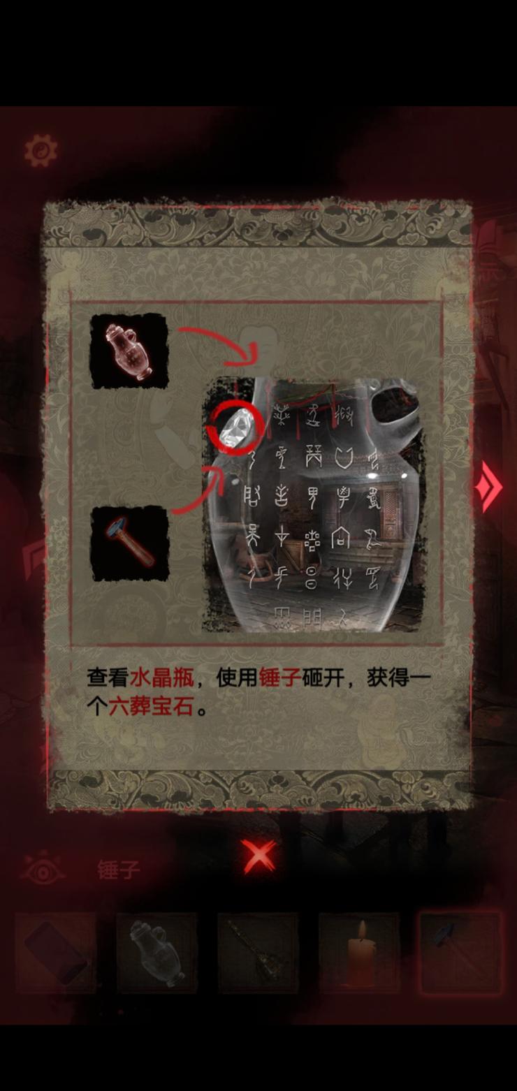 在封煞殿按照正确顺序点燃蜡烛,放上玉石后从神龛里面的夹层取得锤子。