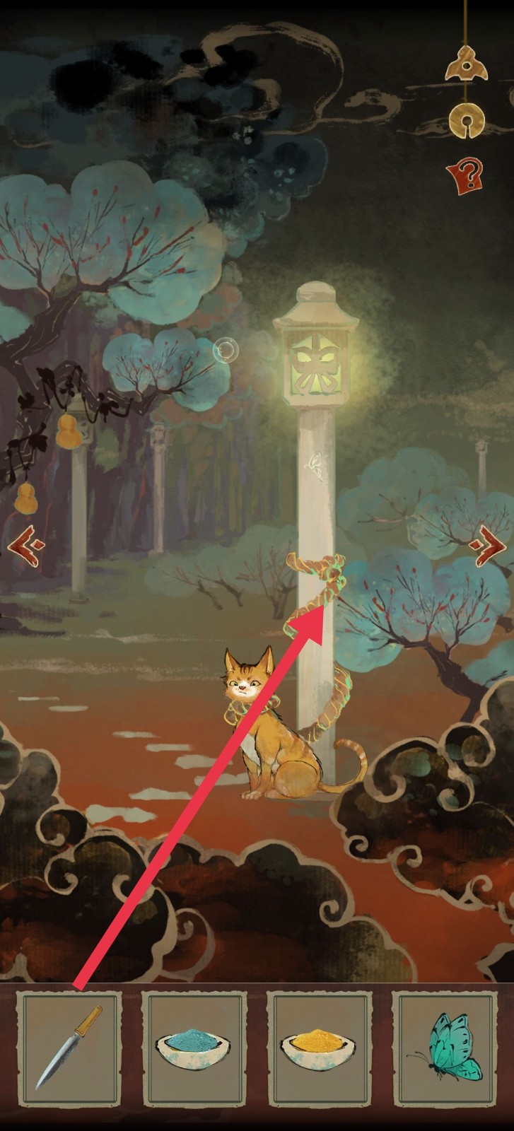5、拿刀割断大叔音猫猫的绳子以后会获得颜料和神奇玉石