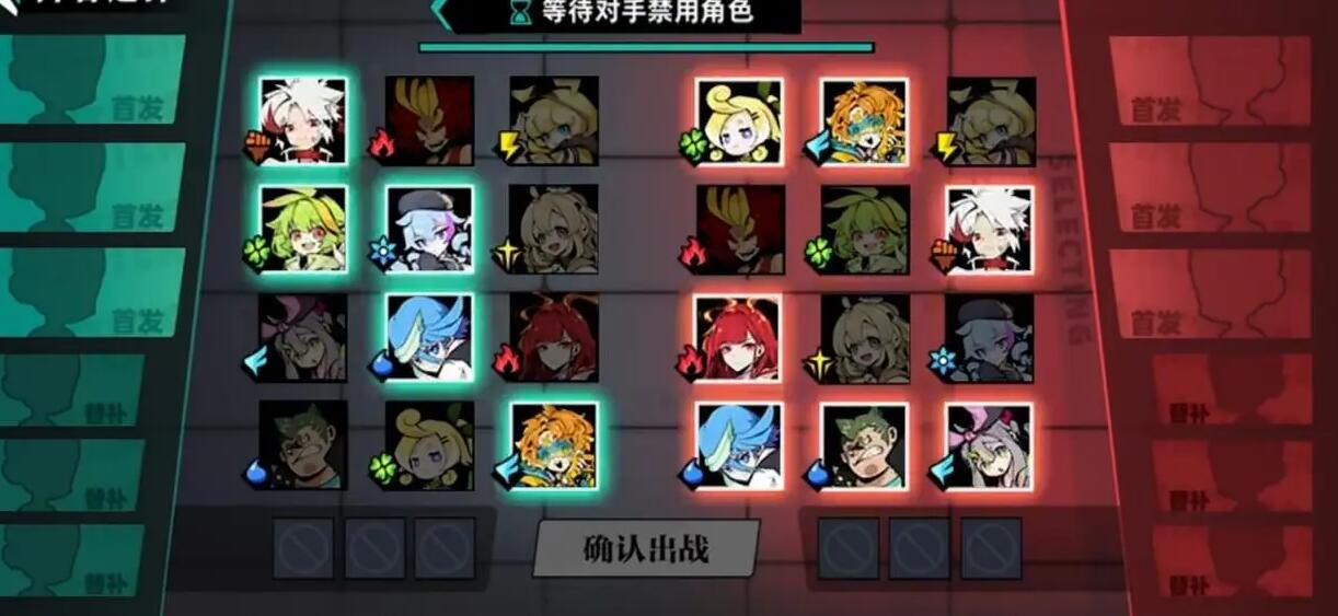 3、玩家在其中双方各种可以选择6个英雄角色,其中三个首发,三个替补。