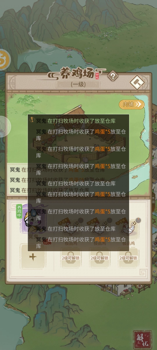 3、并且小鸡长大之后还能生蛋不过也是需要15分钟基本上一分钟一轮。