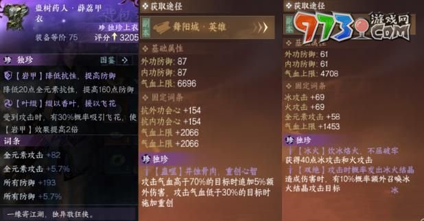 2、固定词条相比当前加伤害最高的楚相玉衣服单计算词条的元素加成少了80.3的火冰元素攻击。