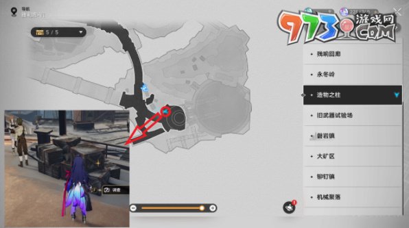 1、首先,前往新地图造物之柱,如下图所示找到箱子上的亮点。