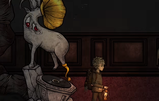 1、往左走,一直点击羊角雕塑,他会裂开的。然后从舌头上获得线索【751】,走到最左边就可以使用这个密码打开铁格。
