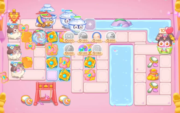 3、接着补充蝴蝶结和卡牌,同时升级地图上的炮台。