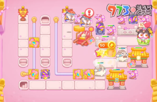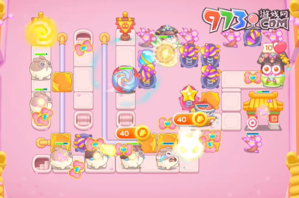 3、在后方建造蝴蝶结和星星,来防止漏怪和后面会出现的飞天兔。