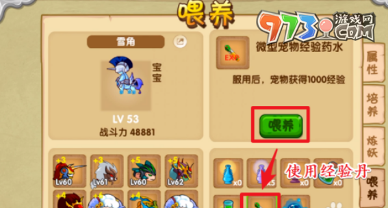 3、建议将低等级的经验丹给低等级宠物使用,高等级尽量不是用经验丹。