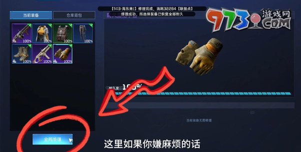 4、怕麻烦的玩家,可以在每天结束时,把所有的装备一键修理,这样也没多少花费。