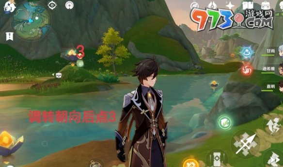 3、2-3点亮此处的莲花后我们可以直接转换视角点击3。