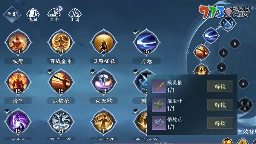 答:使用焕灵根、濯尘叶、悟境花即可解锁