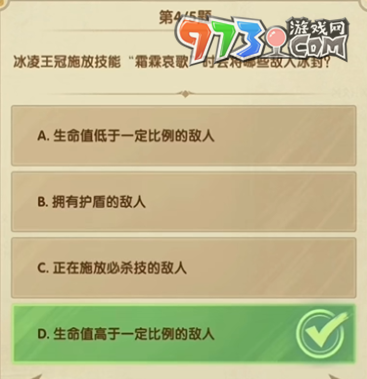 5、冰凌王冠施放技能“霜霖哀歌”时会将哪些敌人冰封?