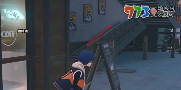 1、接取任务后选择传送到光映广场的咖啡店,顺着右侧楼梯来到天台;