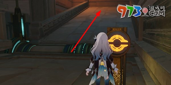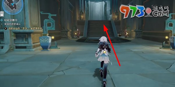 2、从传送点出来后右转上楼梯,可以看到一个屏风可以直接穿过去;