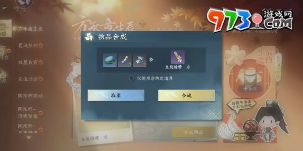 4.集齐以上三种材料即可制作物品【生辰绶带.方】。