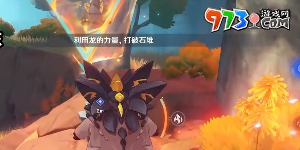 4、之后附身峭锋龙的身体操作它破坏岩石,成功解救被困的幼龙。