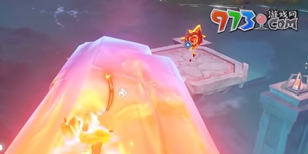 7、切换视角指角色视角,打开风之翼来到机关操作按钮旁,操作按钮关闭机关。