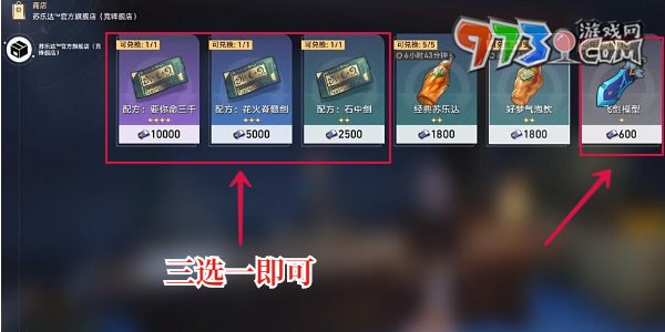 4、之后进入购买界面,可以在三种配方中随意选择一个,然后再买最后的飞剑模型。