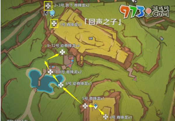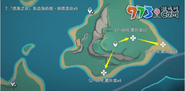 8、流泉之众东侧岛屿讨伐路线,如下图所示。