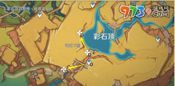 5、彩石顶洞窟讨伐路线,如下图所示。