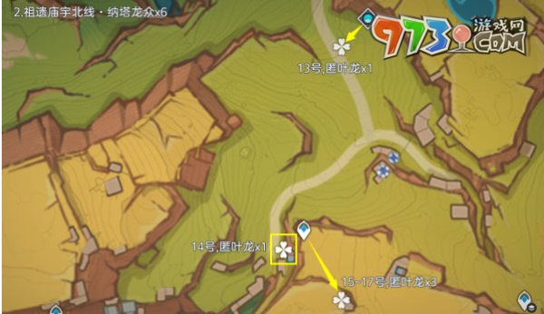 13、柴薪之丘东北侧讨伐路线,如下图所示。