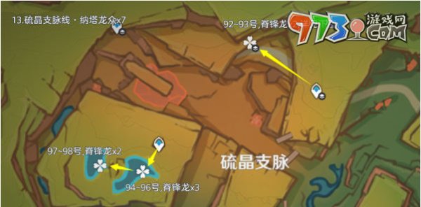 15、硫晶支脉山脉横裂处讨伐路线,如下图所示。