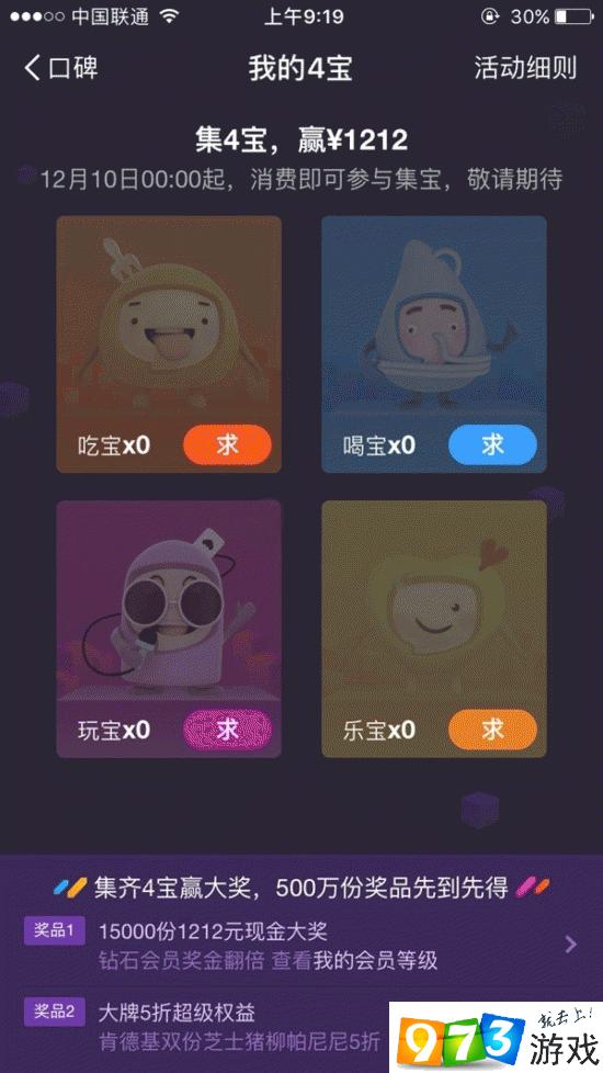 2、进来之后便可查看自己的4宝— —吃宝、喝宝、玩宝、乐宝等等,我们会发现可以向好友求宝卡。