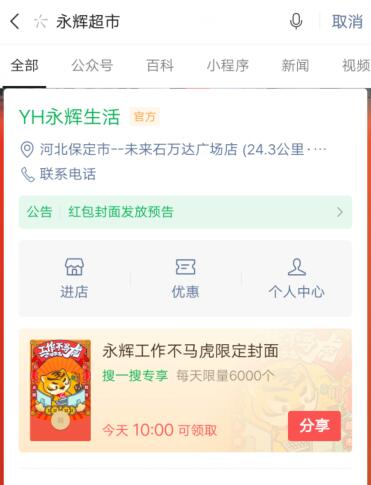 10:00——打开微信搜索【永辉超市】领取学习不马虎的虎年红包封面;