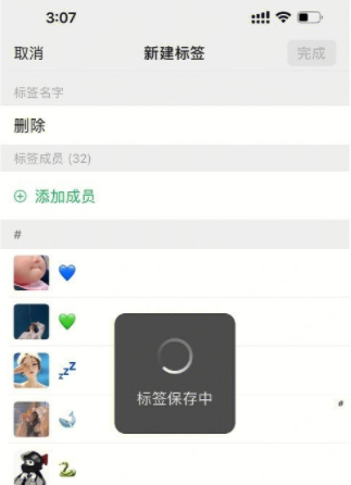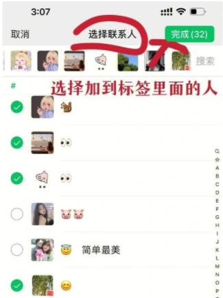2、然后新建标签选择想要删除的联系人,添加其中选择进新创建的标签中。