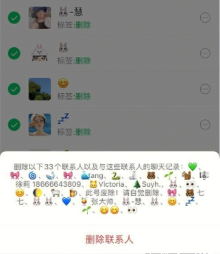 5、最后将用户选中之后删除,完成上面操作实现批量删除好友。