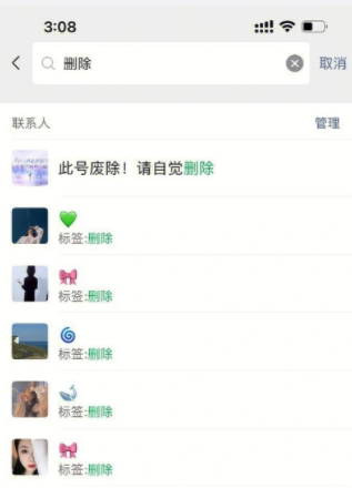 4、创建标签之后搜索输入框中找到对应的好友点击右边的管理。