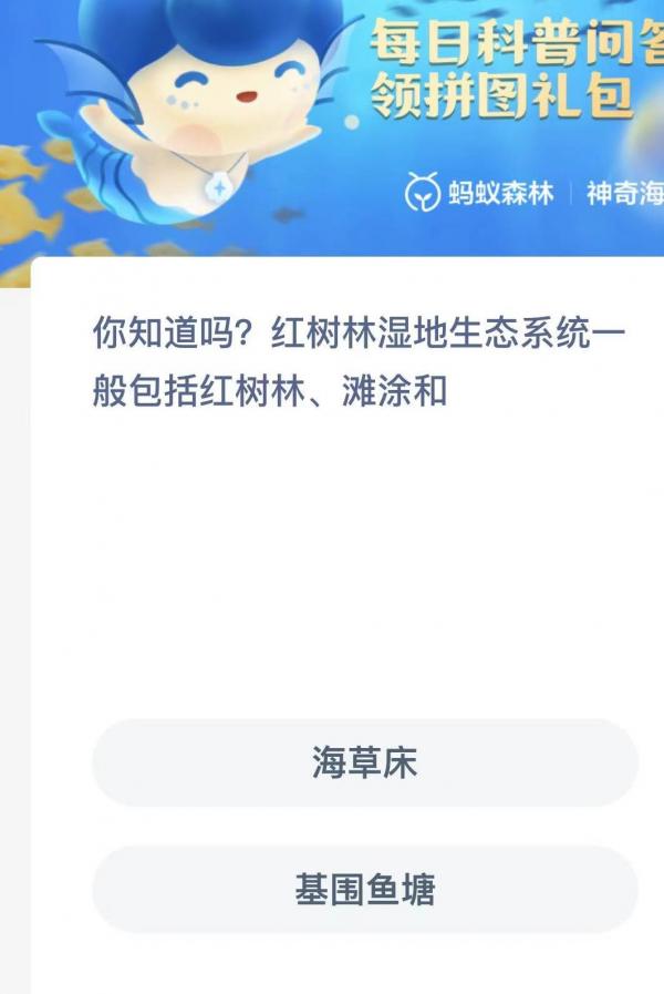 在红树林中的所形成的湿地生态系统问题成为了今天为大家所带来的题目内容,其中询问了红树林滩涂等相关的内容,很多小伙伴在今天的题目中所询问的题目中纷纷不知道该怎么去进行回答,对此小编给大家带来详细具体的内容介绍一起了解下吧。