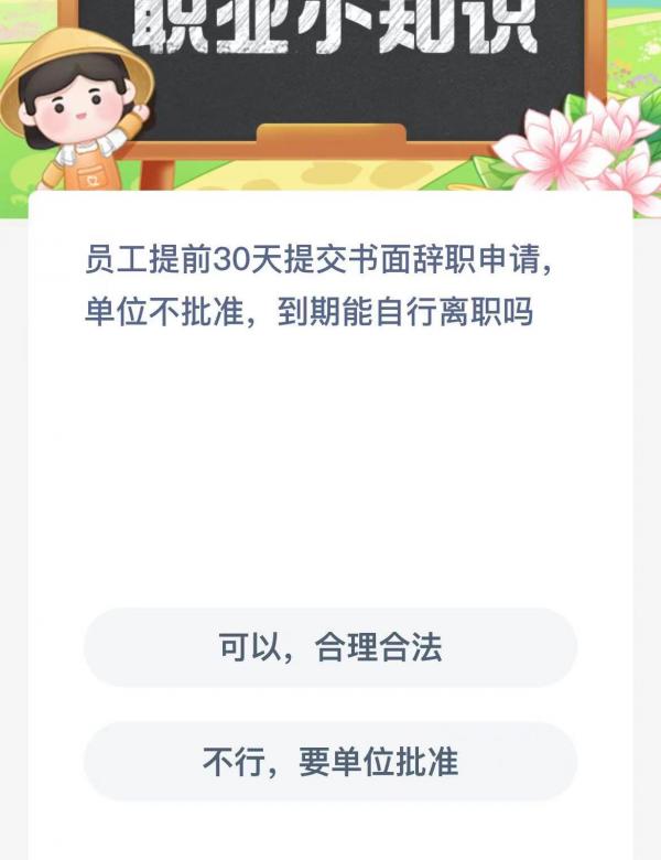 今天的支付宝蚂蚁新村中询问到了关于员工书面申请的辞职申请问题,不知道在工作的过程中大家是否有遇到过的,当提出了辞职申请之后其实到期之后是可以自动离职的并且在劳动法中也都是有所规定的,不知道大家在家今天的蚂蚁新村小课堂中是否回答正确呢,对此小编为大家带来详细具体的内容介绍,感兴趣的话一起了解下。