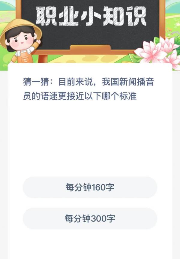 不知道大家在日常生活中收听观看新闻主持人播放的时候是否有注意到了其语速的问题,在蚂蚁新村的题目中今天就询问到了相关的问题,很多小伙伴对此都还不知道该怎么去进行完成,下面小编为大家带来了详细具体的内容介绍感兴趣的话可以一起了解下。