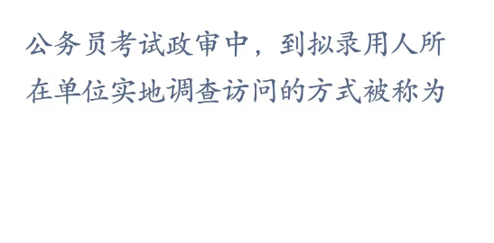 公务员考试政审中,到拟录用人所在单位实地调查访问的方式被称为?今天的问题正是关于此,小伙伴们知道答案吗,说不定可以帮助自己了解考公。下面小编就给大家带来支付宝蚂蚁新村小课堂4月13日每日一题答案,还不知道的小伙伴快来看一看吧。