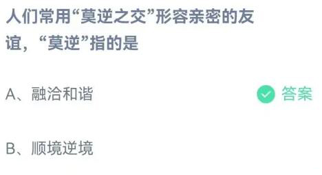 人们常用莫逆之交形容亲密的友谊莫逆指的是