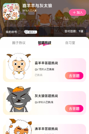 3、参与到活动中点击中间的答题挑战,可选择对应的羊群角色点击后面的去答题参与挑战即可。