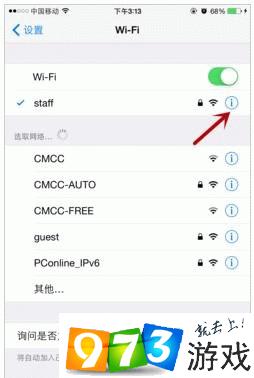 点击已连接的WIFI网络后面的“感叹号”,进入网络设置界面。